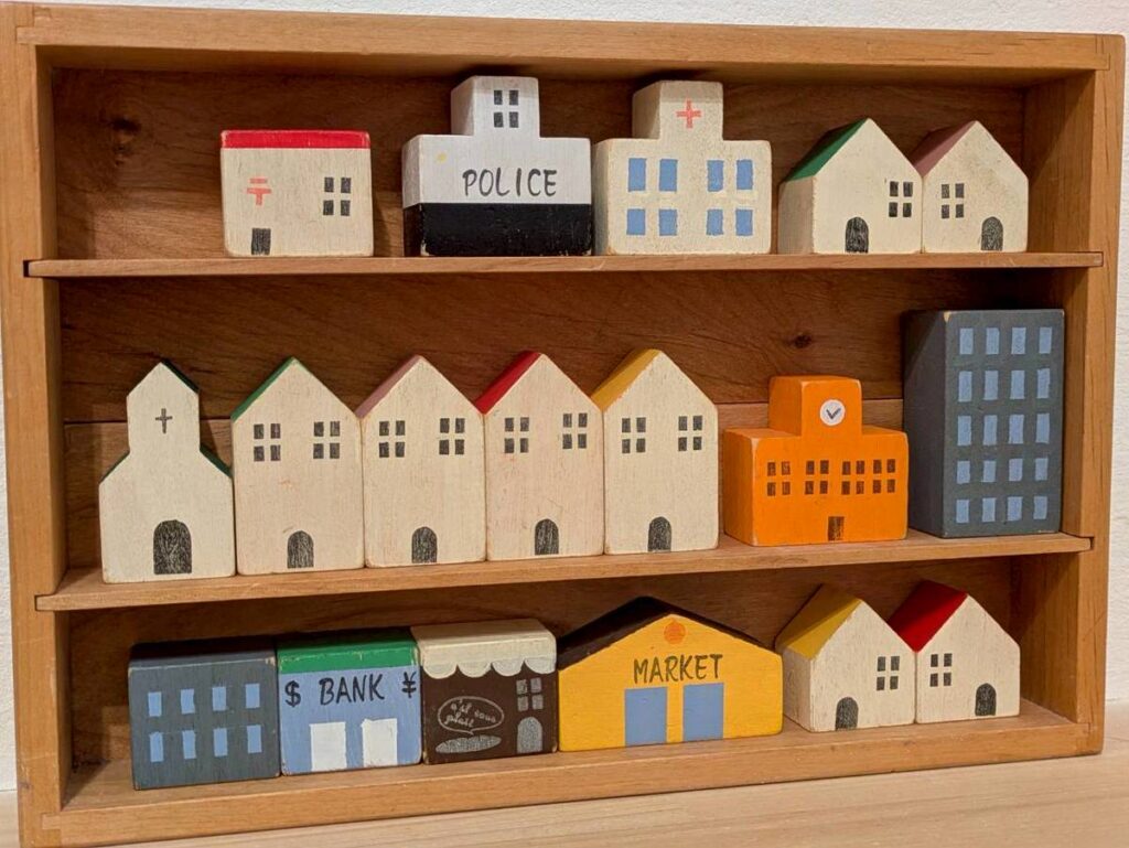 ・積み木が、家になったり、電車になったり