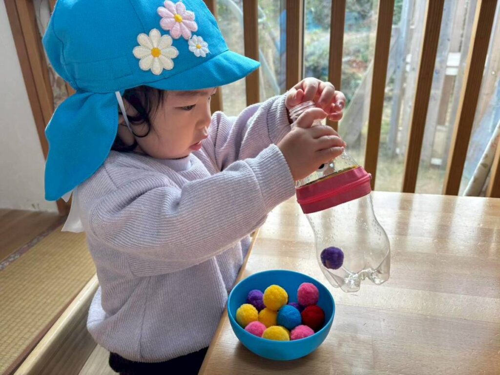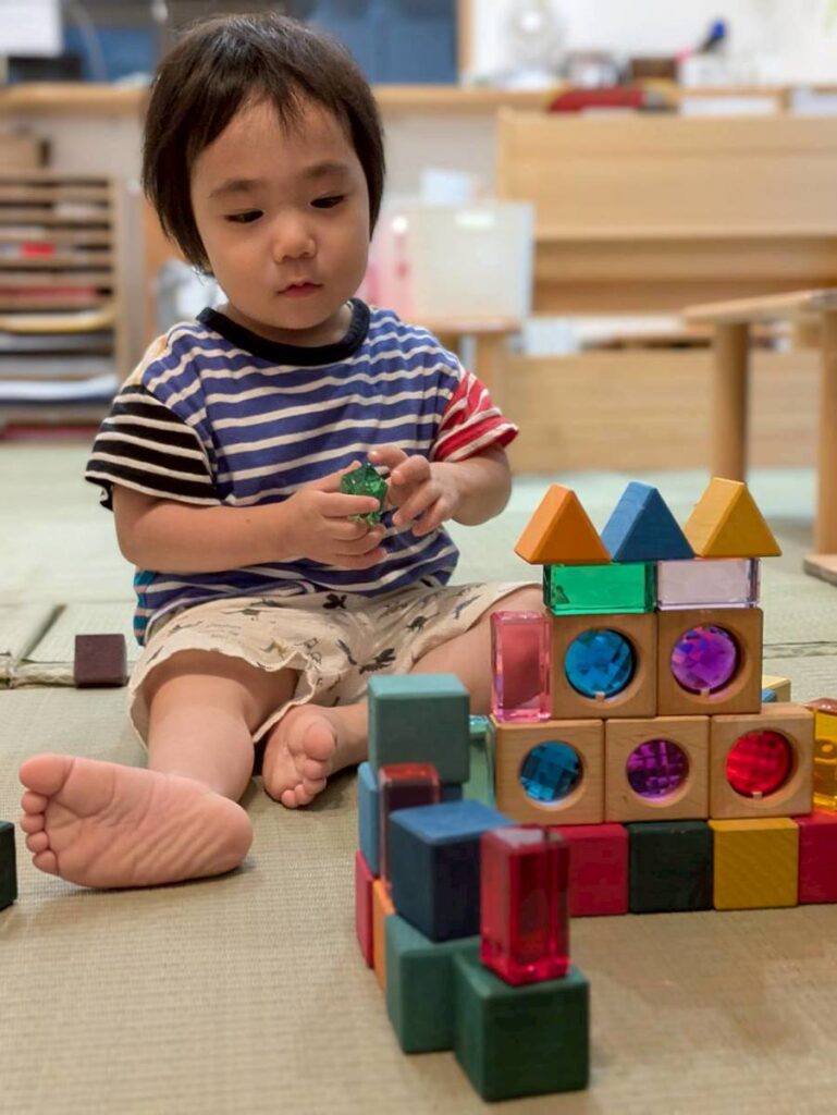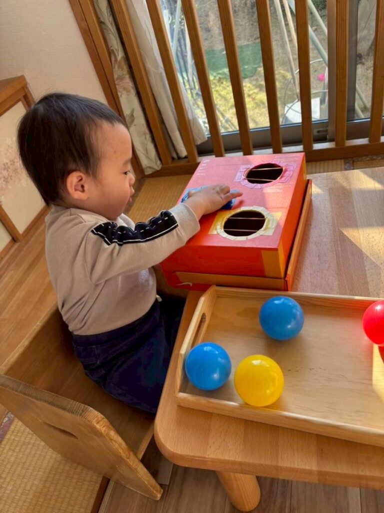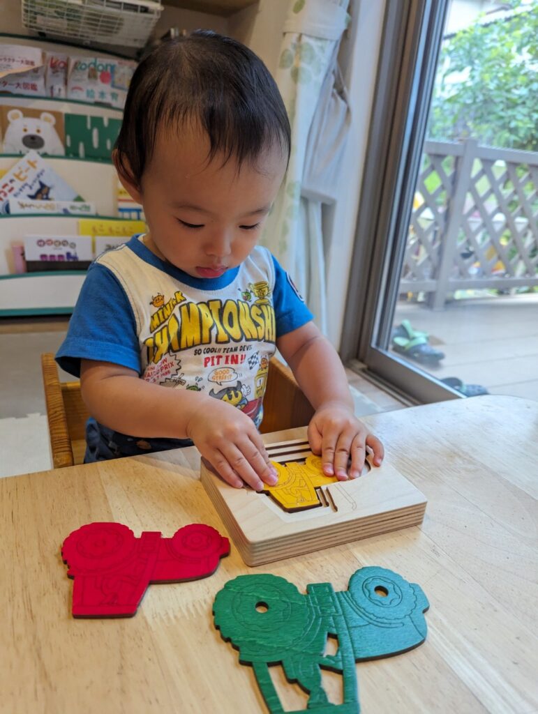 こども自身が好きなおもちゃを選び、触れ、試し、繰り返す。