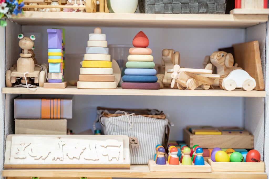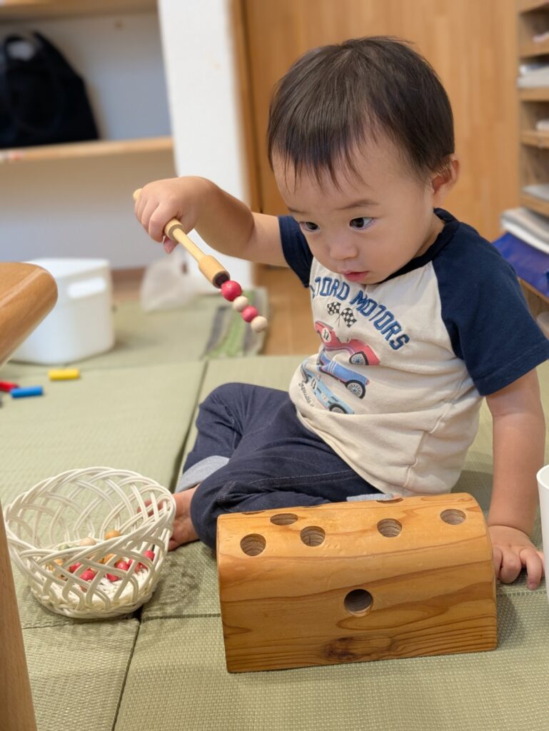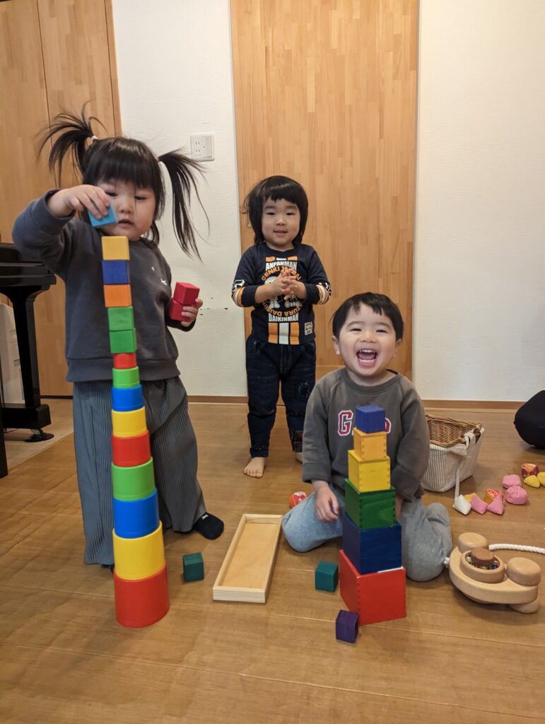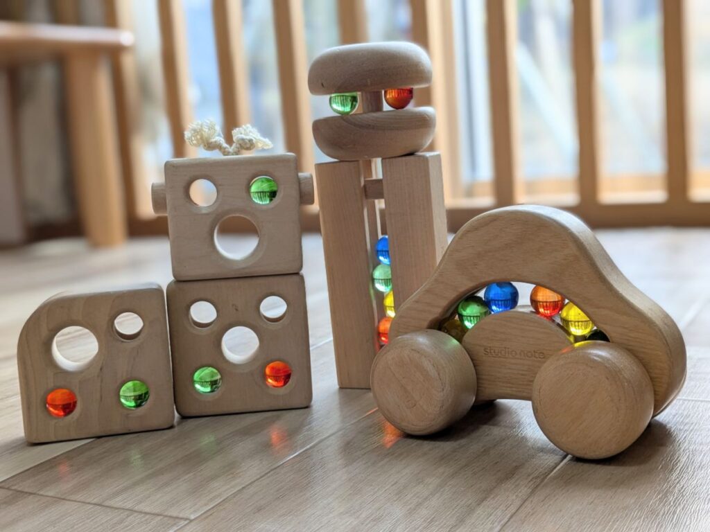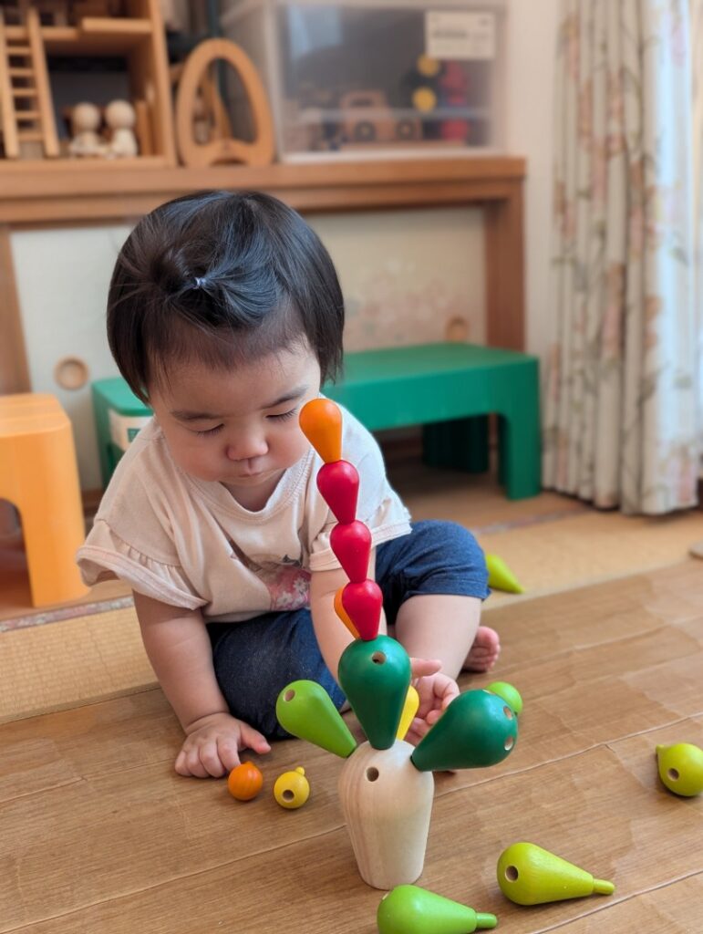 自然なおもちゃに囲まれた、あそびの時間